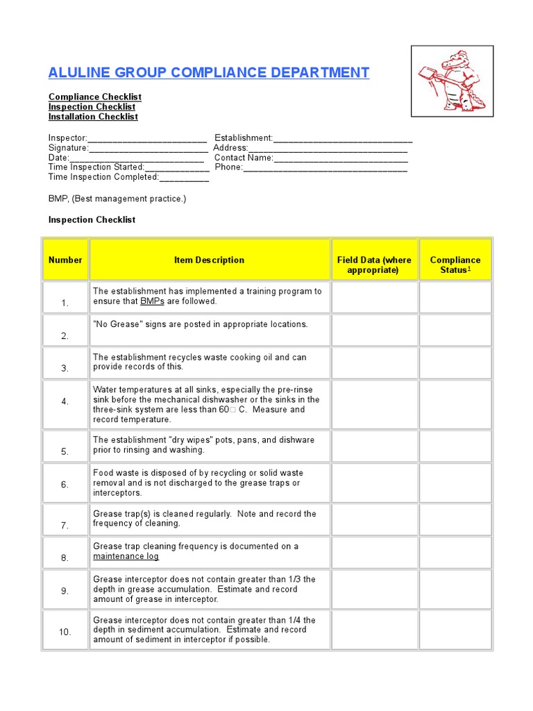 Steering fiClutchCoolant level hoses Steeringfi Fuel line leaks Horn safety. Inspection and Maintenance Checklist Catch Basin. Facility NameDesignator Date of Inspection.